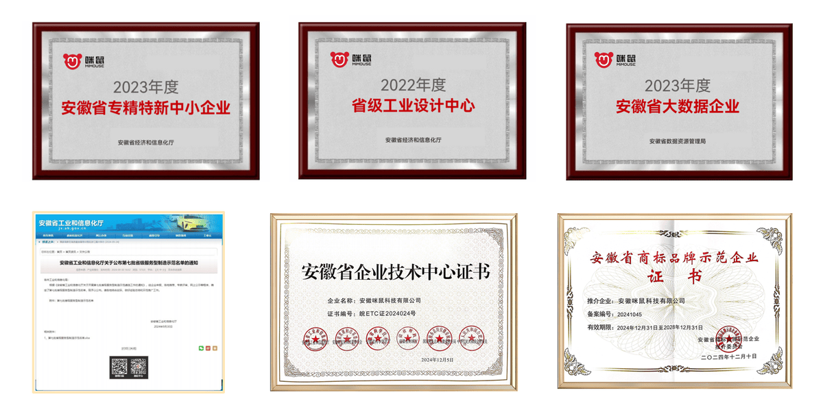 从品类原创者到行业领跑者,每一项天分的背后,都是对我们研发实力、产物质量、行业贡献的全面承认。11年风雨兼程,咪鼠先后获得等多项省级权势巨子天分,是行业对我们手艺实力取成长前景的最好证明。实正的产物力,都由咪鼠率先引领;11年里,实现了全链自从研发。